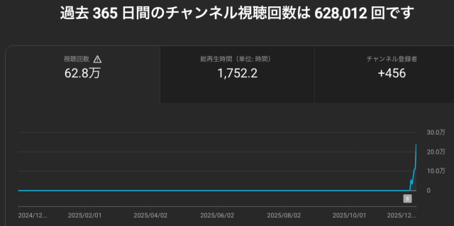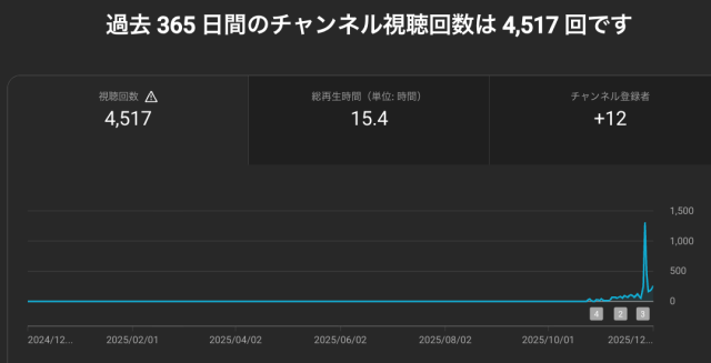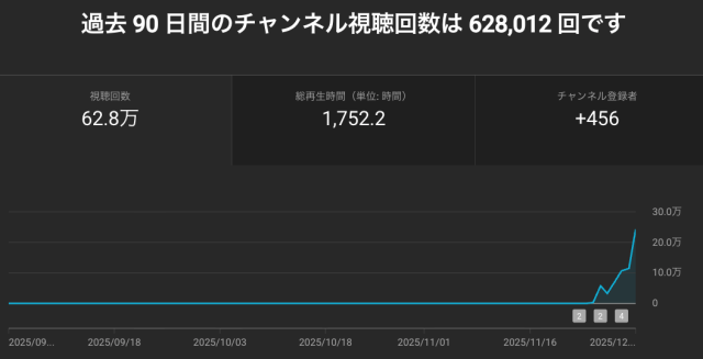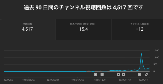 2025年10月のYouTubeチャンネルの広告収益報告と2025年12月1日時点のアナリティクスです。