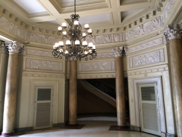入り口にはシャンデリアが飾られていて、雰囲気はスペイン統治時代の建物です。