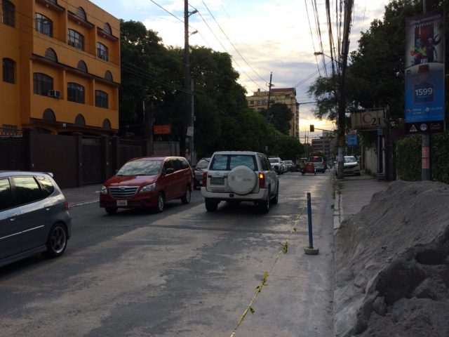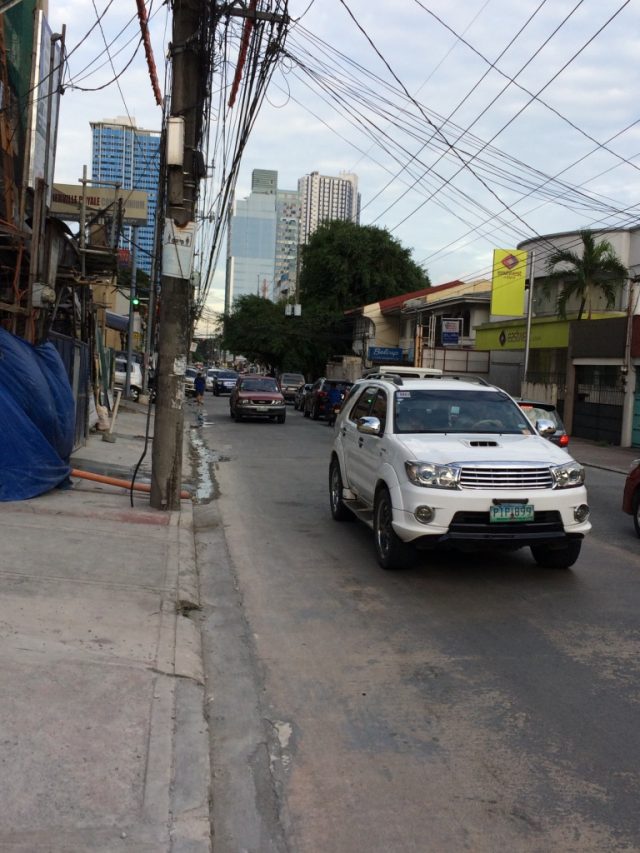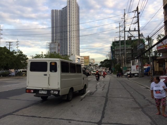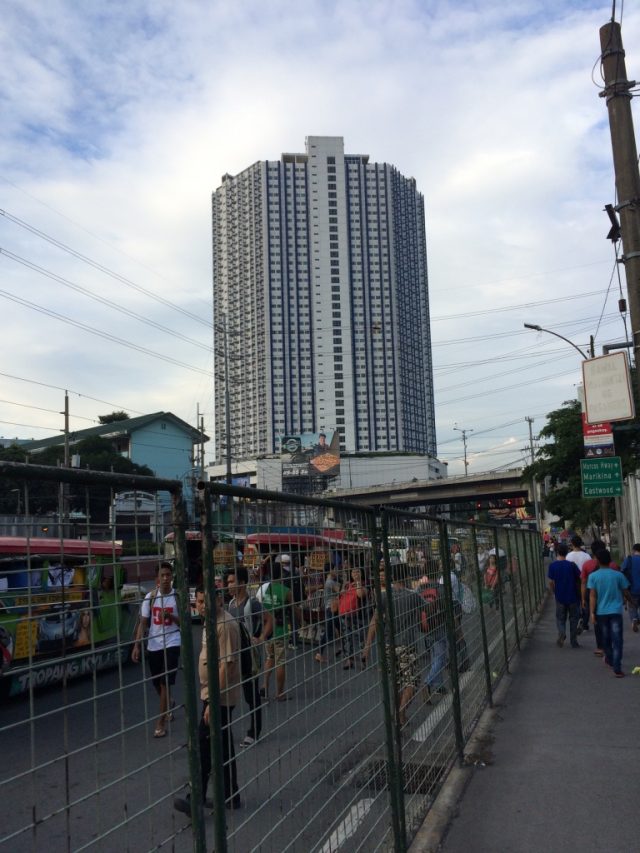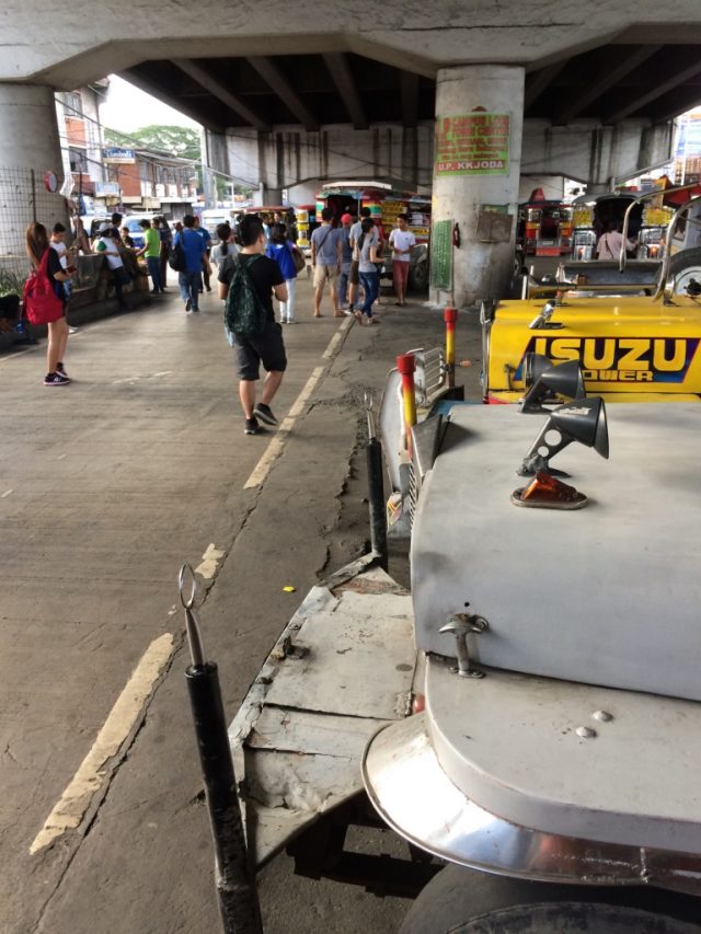 右手には大きなマンションとジプニーが沢山停車しているのが見えます。こっちの方向に歩いて行きます。