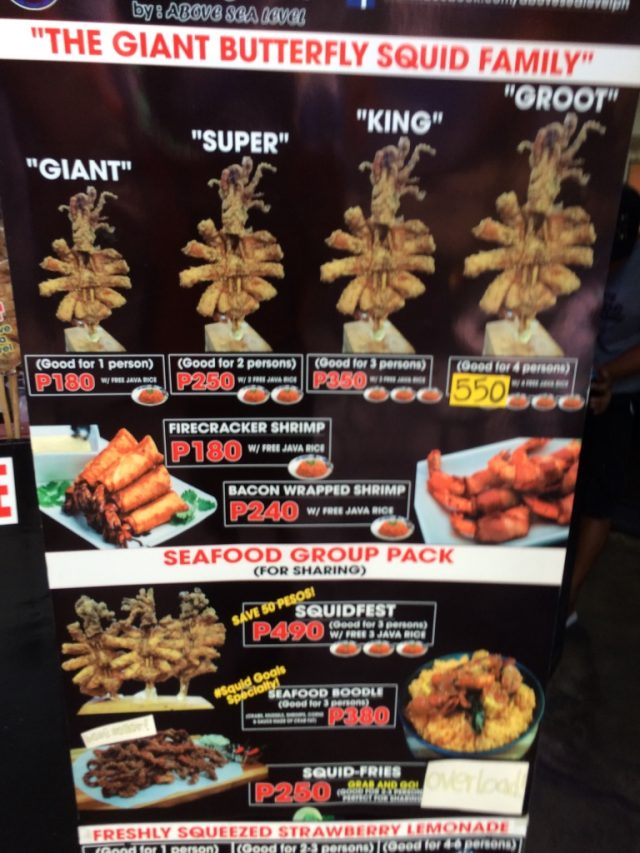 イカのゲソ揚げですね。一番安いのものでも180ペソします。