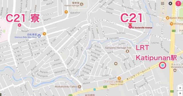 ちなみに、C21の寮は学校から結構離れていて、徒歩では厳しいです。上の地図のC21 寮と書いてある場所です。