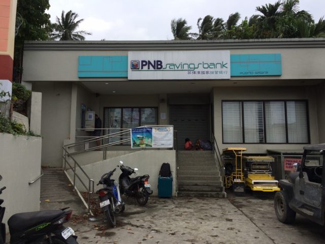 プエルトガレラでお金を引き出すにはこちら、PNBのATMを利用します。