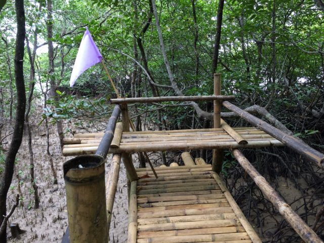 この竹でつくられた橋を渡ってマングローブの中に入っていきます。ここで気をつけないといけないのが、