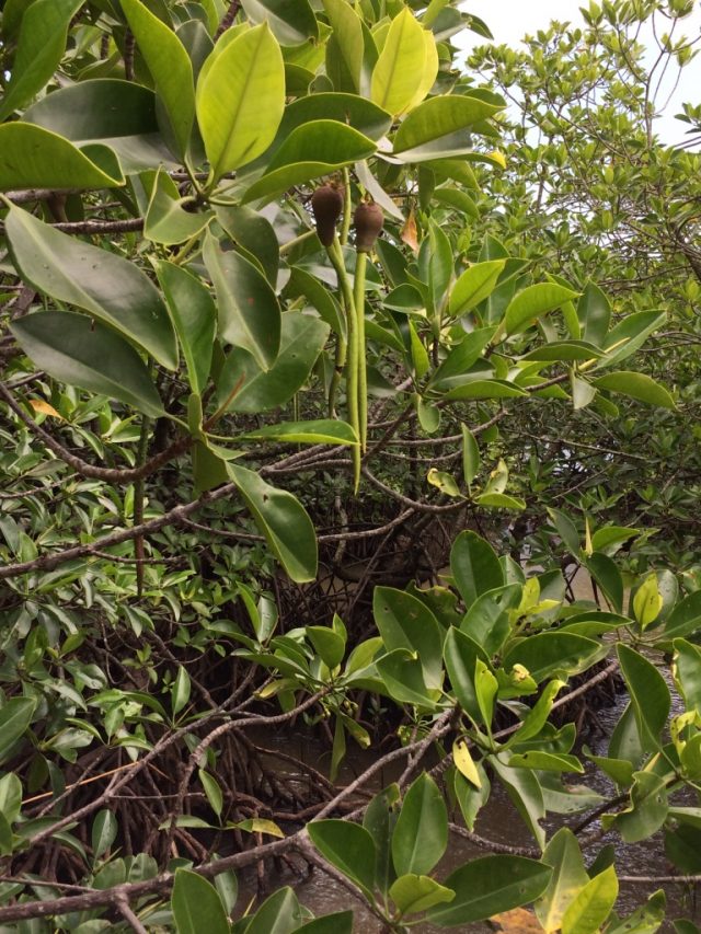 マングローブの枝からこのような実がぶら下がっていて、これが下に落ちるとさらに根が張って頑丈なマングローブに育つのだそうです。