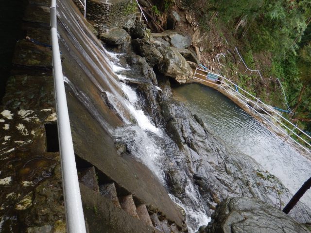 ここから見下ろすとさらに下の段に水の溜まり場があり。雨が冷たくてちょっとそこまで行く元気がなく、見学のみ。