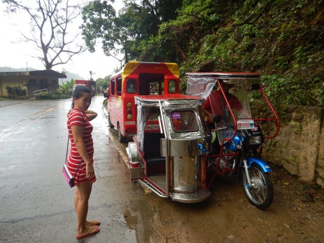 朝8時過ぎに出たのですが、このTamaraw Fallsの観光までは雨が降ってました。どしゃぶりではなかったのでそれほど濡れることはなかったのでそれはよかったのですが、雨で外気が冷やされてこのトライシクルだと少し寒かったです。