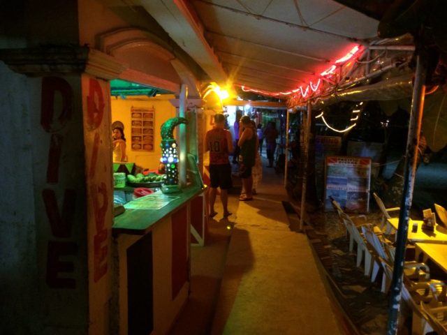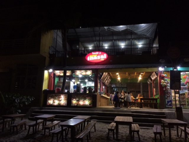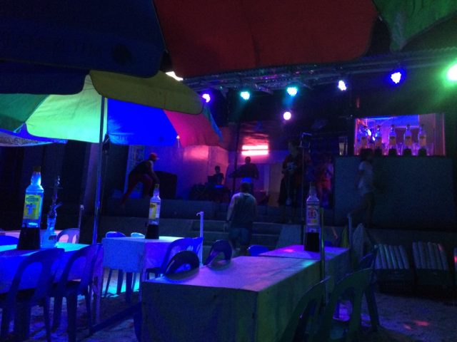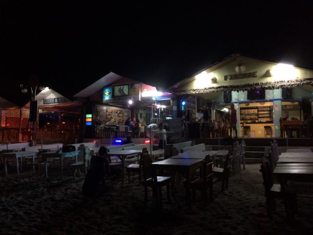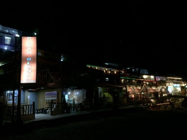 夜になると目立つのがホワイトビーチのボート乗り場から一番離れたところにあるこのレストラン&宿。暗闇の中にこのエリアだけ異様に輝いています。