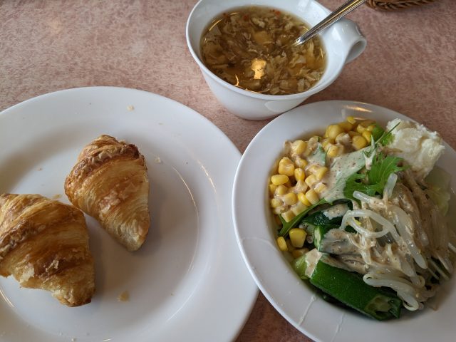ライス、パン、スープバー、サラダバーはおかわり自由というコースメニューでした。