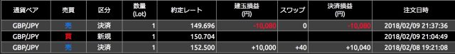 ということで、2月8日にYJFXのキャッシュバック条件をクリアさせただけで、それ以外はドル円の取引はしませんでした。