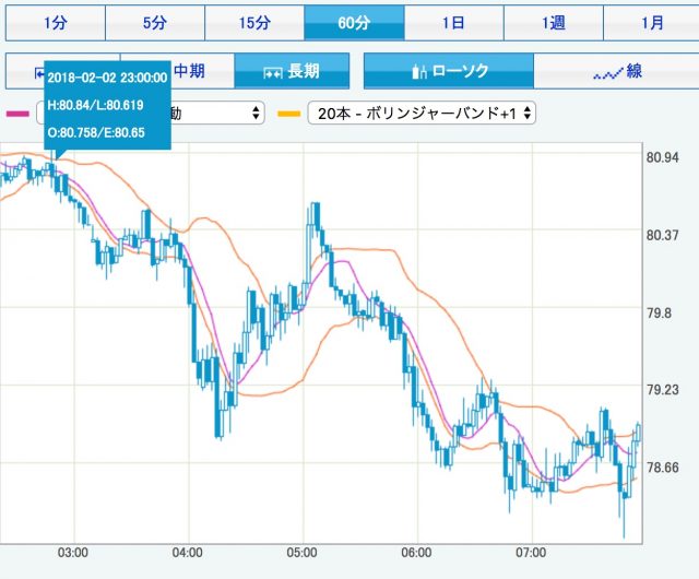 ニュージランドドルも円高に進行しており、2月10日3時には78.097円まで進みました。