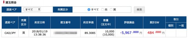 ただ、そちらも約定単価から下がっているので、含み損の状況。しばらく放置ですね。
