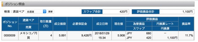 買いポジションで保持していたメキシコペソが、為替損益、スワップともにプラスに転じたことが理由。