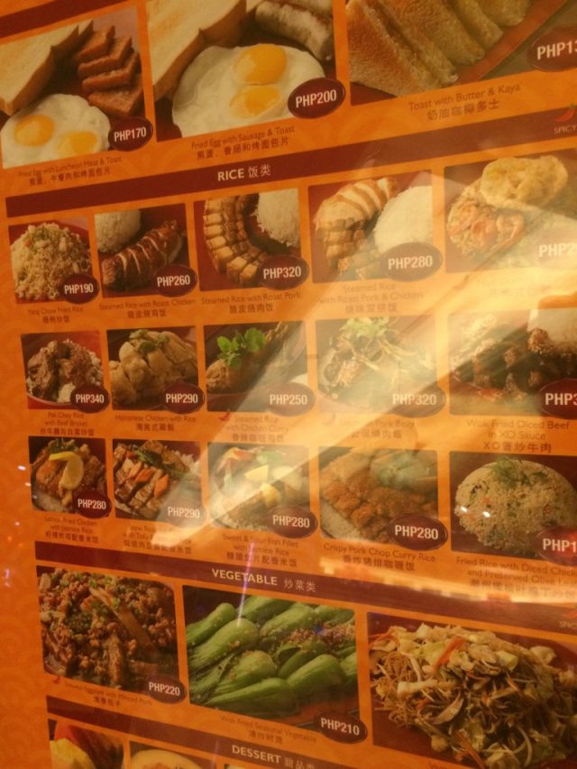 ここはチャーハンが190ペソですし、他のメニューもほとんどが300ペソ以下の普通の値段。