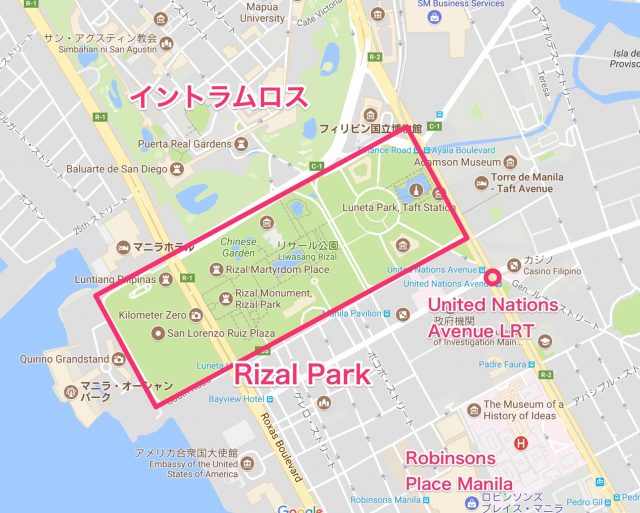 マニラの人の憩いの公園、Rizal Park。場所はこちら。