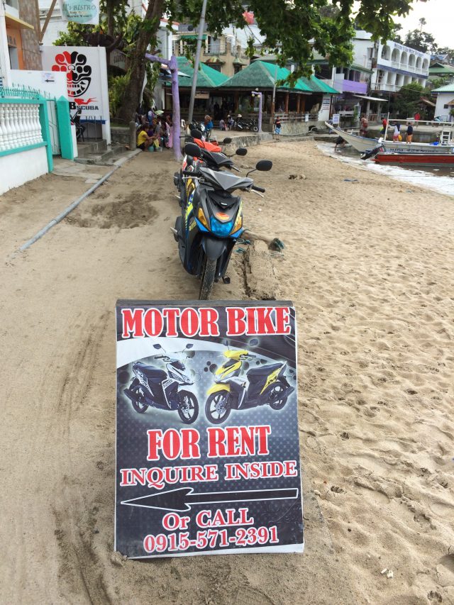 サバンビーチにはレンタルバイク屋がたくさんあり、この細い道沿いにもあります。