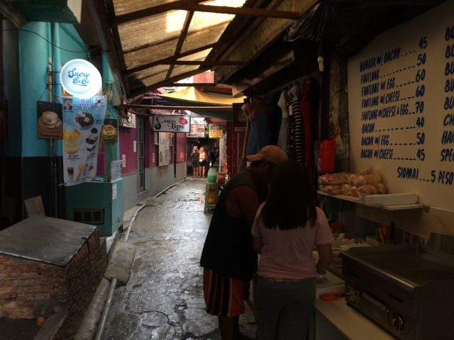 細いメイン通り(?)から裏に入ると、このような路地裏もあって、この両脇に小売店、レストラン、バー等お店がたくさん並んでいます。