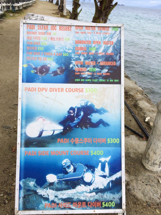 PADIのライセンス取得コースですね。オープンウォーターが…ちょっと読めません。
