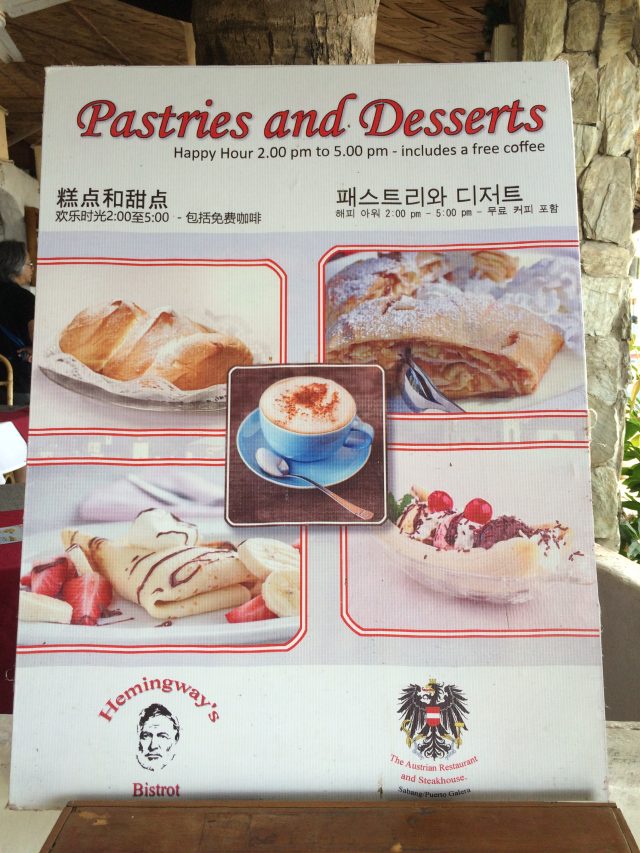 ここでしたら同じメニューが75ペソ。120ペソでも高いと感じたらここが良いのでしょうが、ここまでくるとリゾートというより我慢大会。ストレスがたまるので節約もほどほどにしたほうがいいですね。