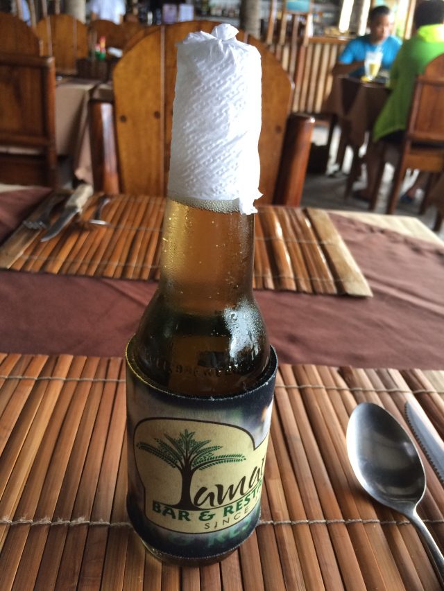 サンミゲルライト。ハッピーアワーの時間に入ったので、40ペソ。
