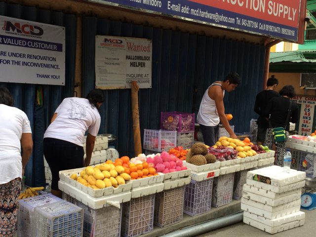 路上で果物も売られています。手軽にマンゴーを買えます。