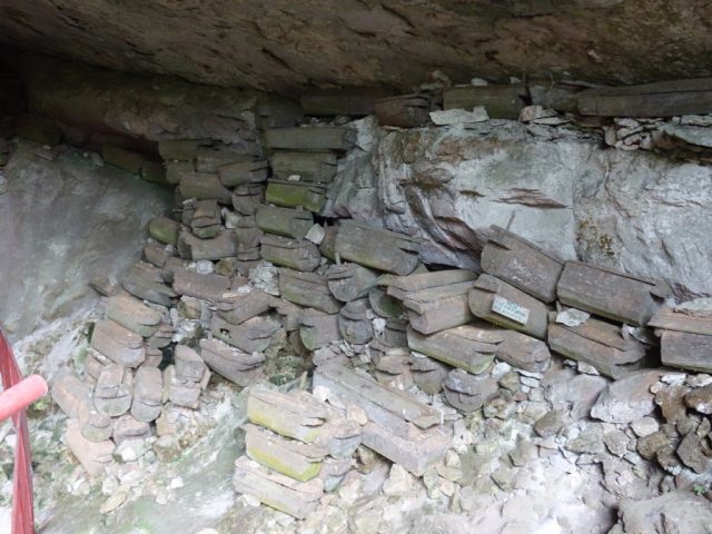 フィリピンで、ハンギング・コフィン(Hanging Coffines)と呼ばれる、崖に棺桶を吊るす風習と洞窟群で有名な村、サガダ( Sagada )。