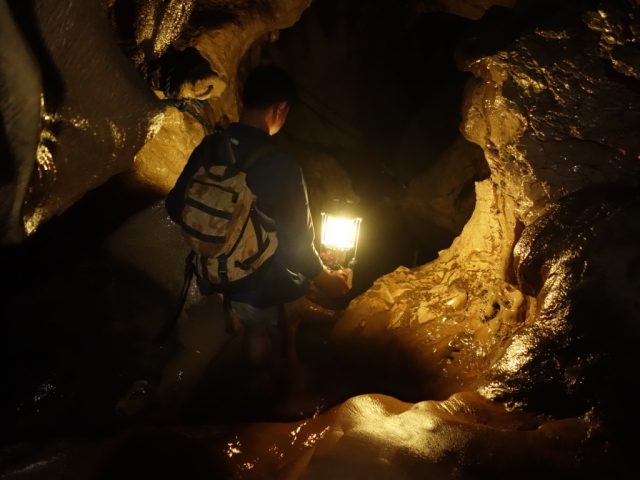 ガイド1人につき基本3人までというのに納得。それを超えると足元が見えなくなり、かなり危険。なので、安物でもいいのでヘッドライトはあったほうがいいです。