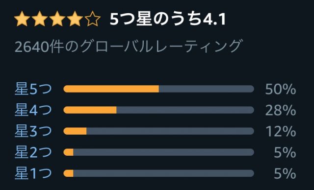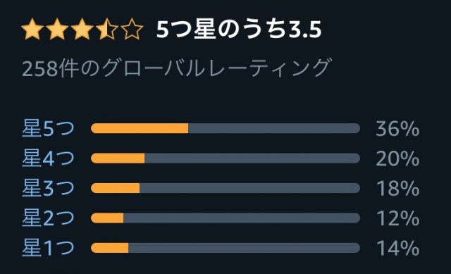ちなみに、Amazonプライムのレビューを見るとこうなってます。