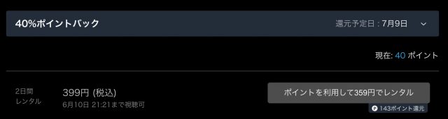 U-NEXTでは399円(税込)で配信されていて、今持ってる40ポイントと追加料金359円を支払ってレンタルしました。