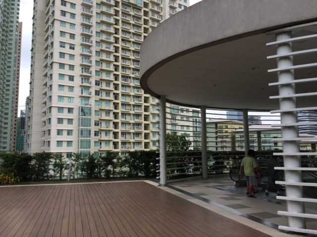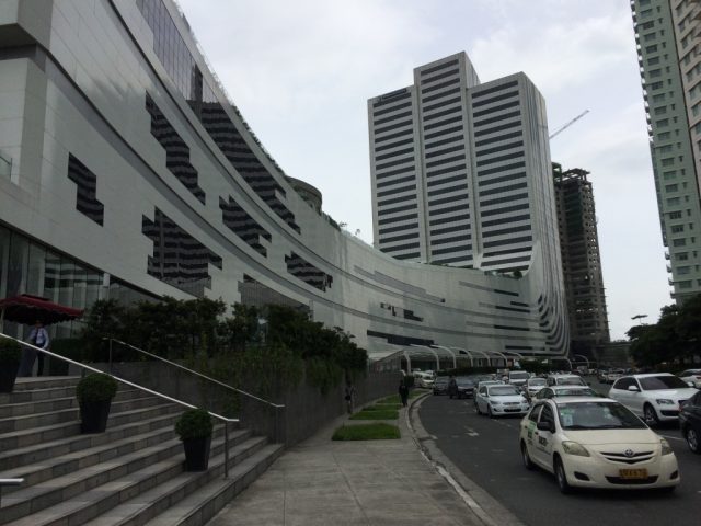 SM Auraの商業施設は5階までで、奥の高いビルの入り口にまたセキュリティーチェックがあります。買い物ついでに入ろうとすると断られますので注意。