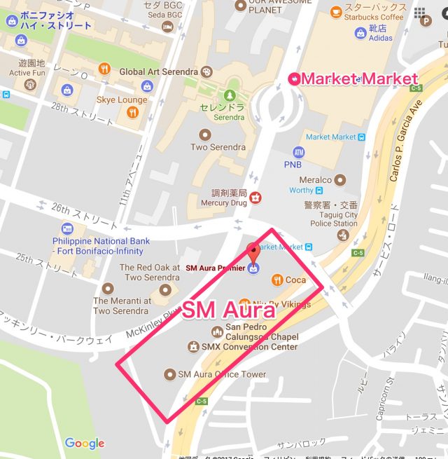 ボニファシオ ( Bonifacio )にあるSMショッピングモール、SM Aura Premier。場所はこちら。