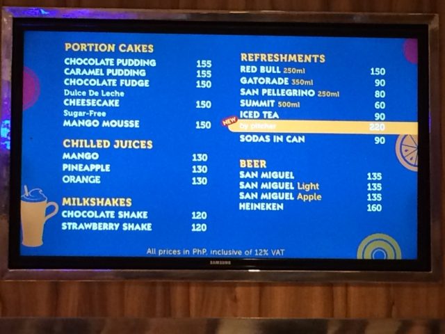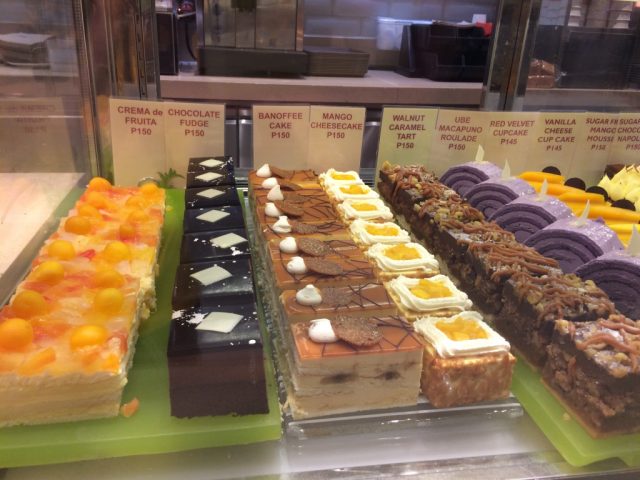 ケーキが300ペソ近くします。OASIS GARDEN CAFEだと約200ペソ。