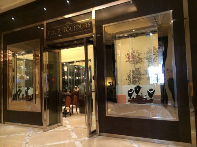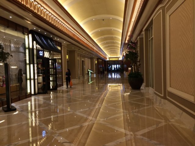 カジノのフロアからのびているこの廊下両隣にレストランやブランドショップがあります。