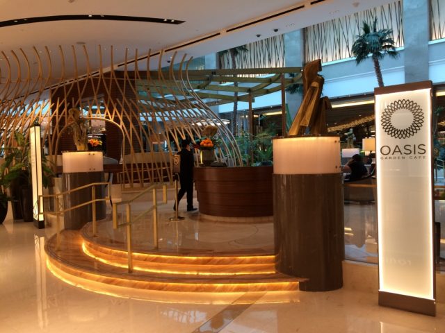 吹き抜けのフロア中央に居心地の良いOASIS GARDEN CAFEというカフェがあります。