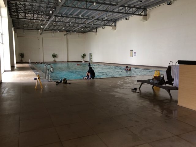 屋内のプールは25mあるので(たぶん)、ここでは本格的に泳げます。ただ、ここもやっぱり水が冷たく、少し水に浸かっただけで泳いでないです。もったいない。