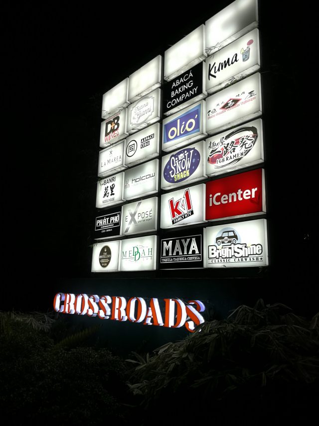 ITパークからCROSSROADSまでタクシーで数分。歩いて行くには遠いし、(車が多いので)危ないのと、数十ペソで行けるのでタクシーで行ったほうがいいです。
