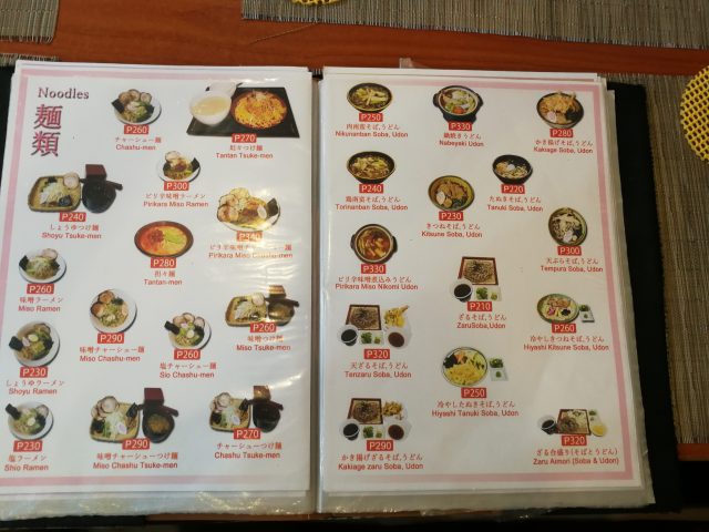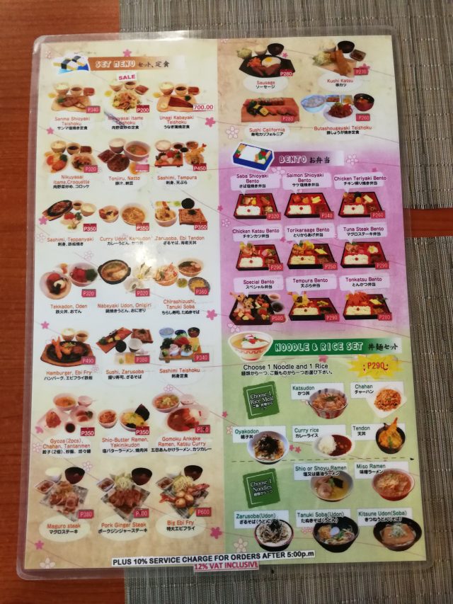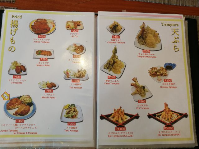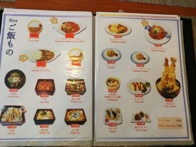 メニューは豊富で、弁当が250ペソからあるのが嬉しいですね。