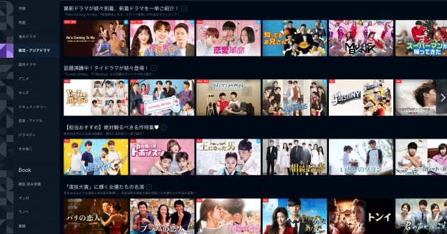 「韓流・アジアドラマ」のジャンルもあって、韓国ドラマも充実しています。