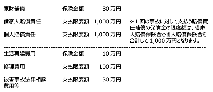 最高保障額: 1,000万円 - 借家人賠償責任 賠償費用共済金(個人賠償責任共済?)