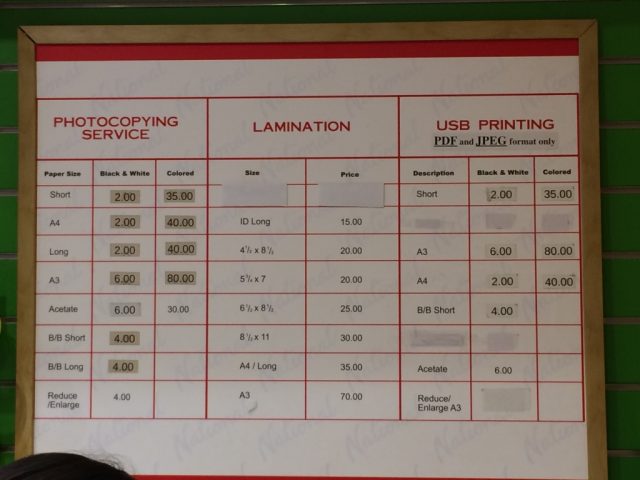 白黒1枚あたり2ペソ。全部で約4ページが2部で、16ペソでした。