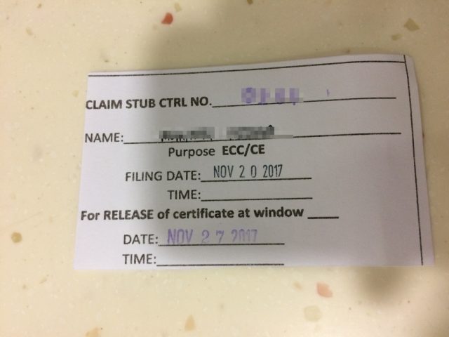 2017年11月末に実際にECCをマニラで取得しましたので、その方法について説明します。