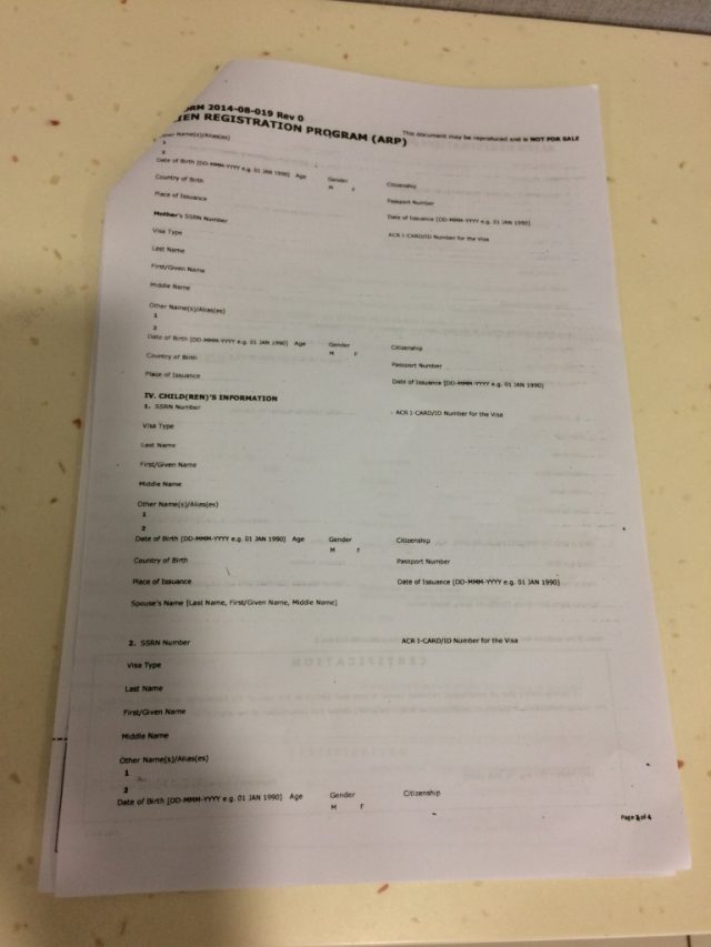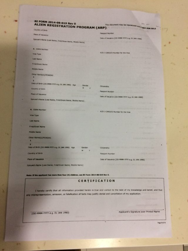 移民局では、ARP(Alien Registration Program)、ECCの順に申請します。