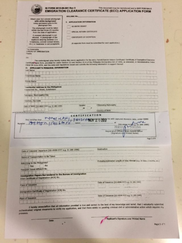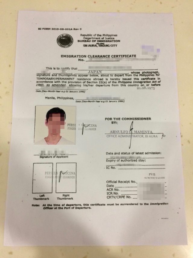 再度書きますが、フィリピンに6ヶ月以上滞在してから出国する場合、ECCがないとフィリピンから出られません。