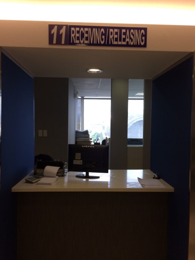 記入後、またガラスのブースにその申請用紙を持って行き、担当者に提出します。