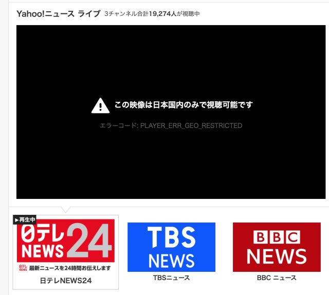 NordVPNがない時、Yahoo!ニュースの記事は読めますが、日本の民法のニュース動画は見れません。