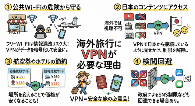 いろいろありますが、一番困るのは、VPNがないと海外での生活で日本のサービスが使えなくなることです。