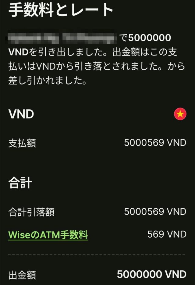 ちなみに、この500万VNDは少し円高だったタイミングに両替しているので、両替手数料を含め全ての手数料をチャラにできています。